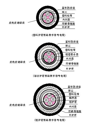 | PTY22 | 聚乙烯絕緣鋼帶鎧裝聚氯乙烯外護(hù)套鐵路信號(hào)電纜 | 敷設(shè)在土壤、槽、管中,能承受較大的機(jī)械外力 | |